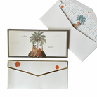 These white and sage green envelopes feature soft foliage and a graceful cheetah, redefining modern Indian style. Elegant with a desi touch- great for family gifting.