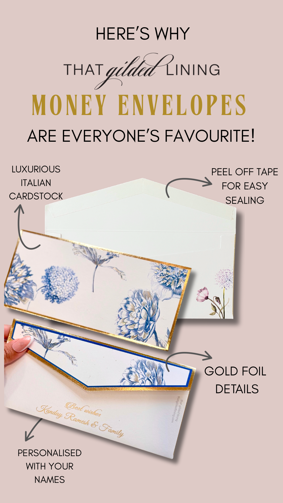 You can get the envelopes and tags personalised with your name in gold ink.